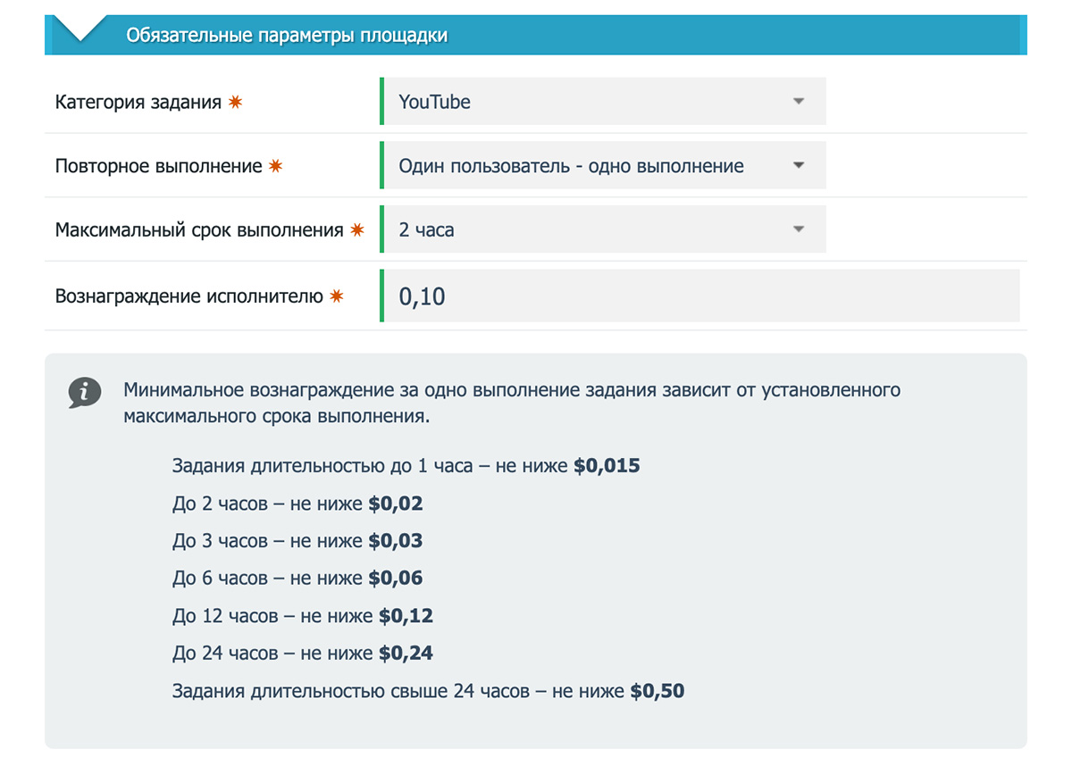 It is also important to remember that all settlements on the platform are made in US dollars, so the reward must be specified in USD.
