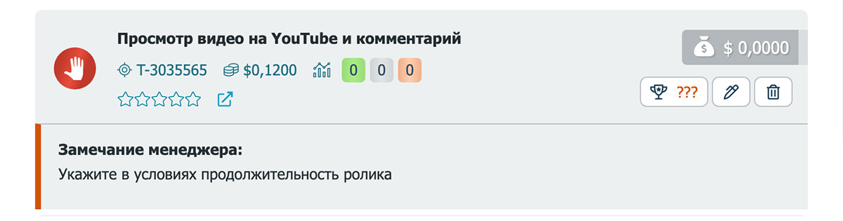 If the moderator has comments, a red button will appear on the left. Such a task cannot be launched until the issues are corrected.