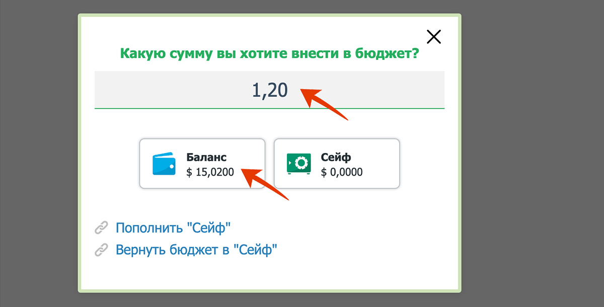 Как пополнить Сейф на SEOSPRINT