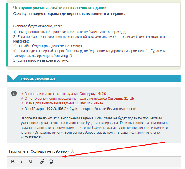 И не выполняйте задания, где в описании рекламодатель требует скриншот, а в отчёте написано, что скриншот НЕ требуется. Вот пример: