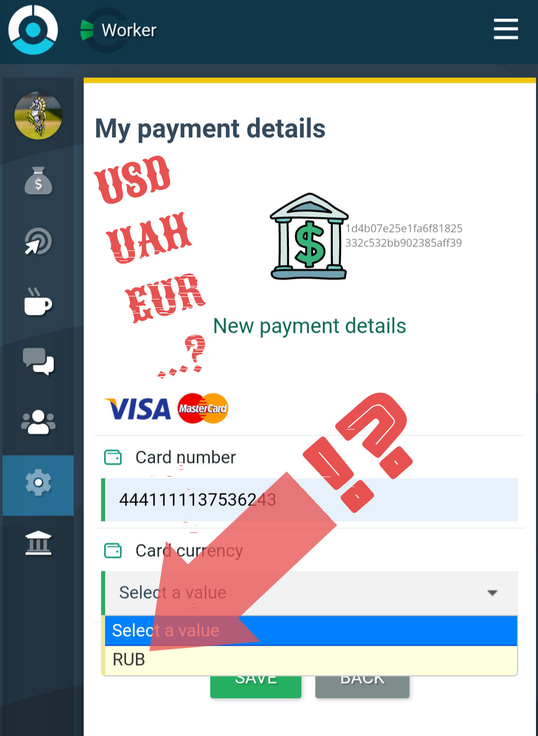 WHY only RUB in add Payment VISA/MC?