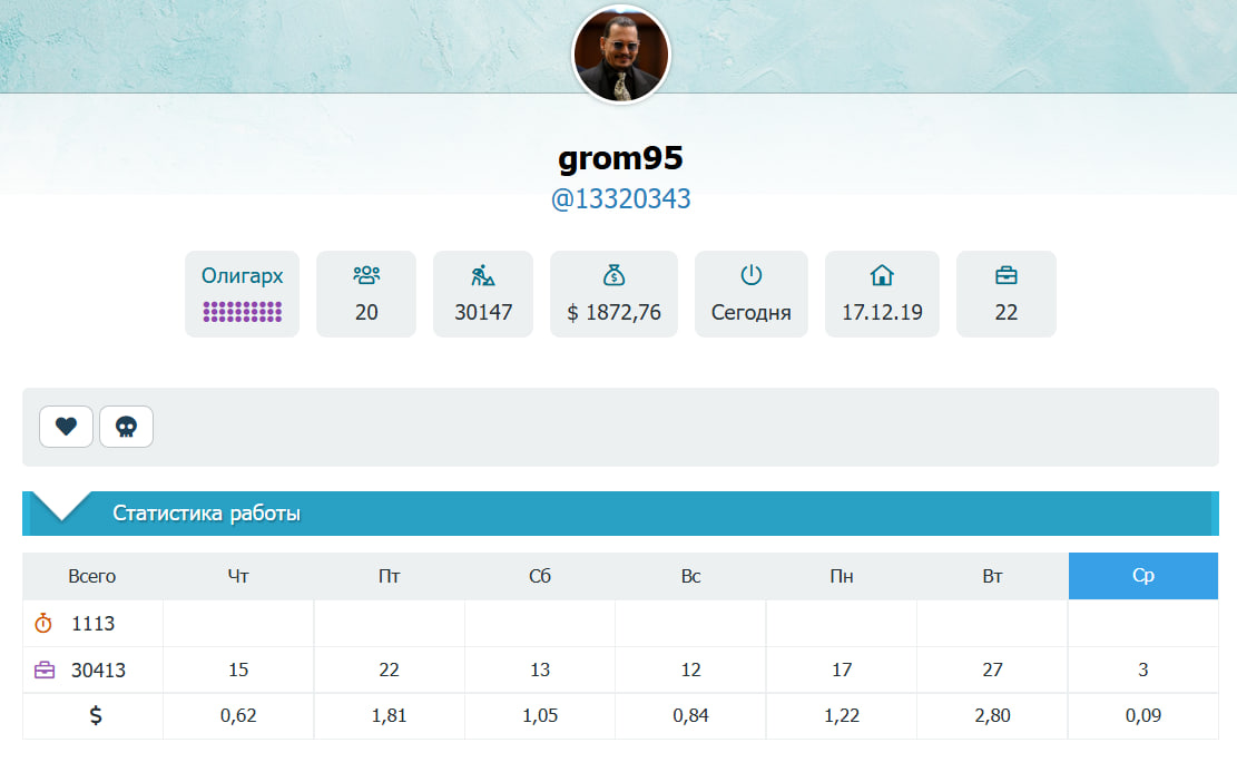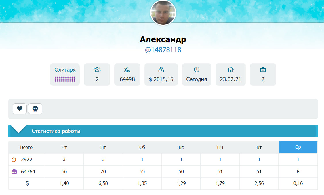 Не в обиду Bugzz, но, на мой взгляд, при оценке лучшего исполнителя нужно учитывать не только количество выполненных заданий, а его КПД — то есть, сколько человек зарабатывает, сколько всего заработал на проекте, количество рефералов и какую пользу он в целом принёс проекту.