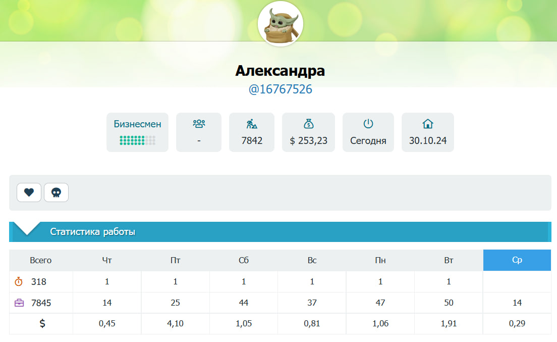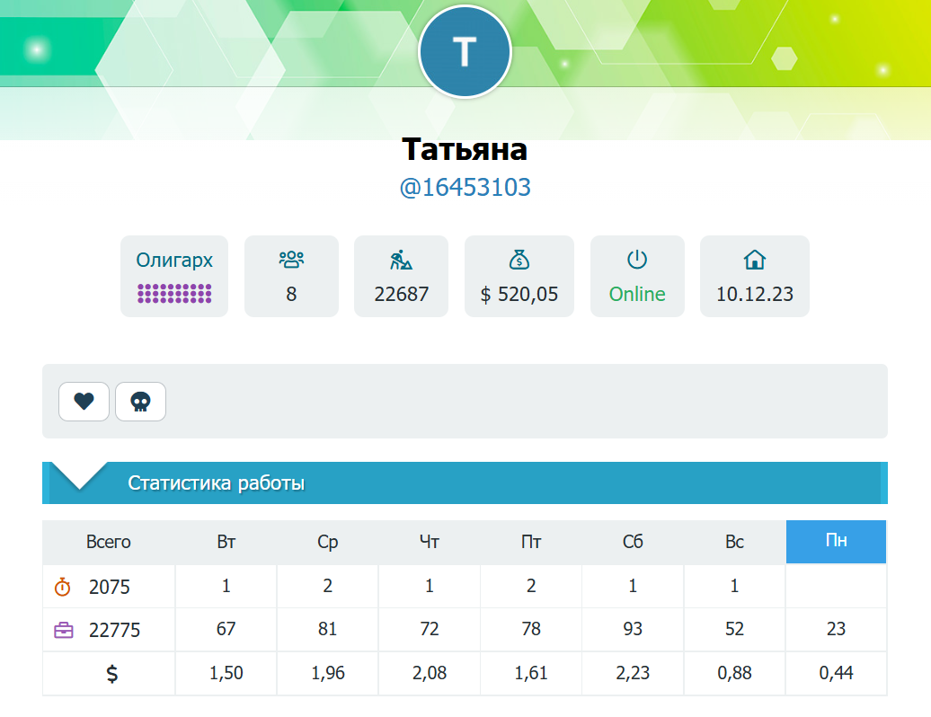 Основными критериями оценки были: наличие актуальной статистики (то есть активная работа на этой неделе 07.05.2025) и высокий заработок в долларах. Себя в этот список я не включал.