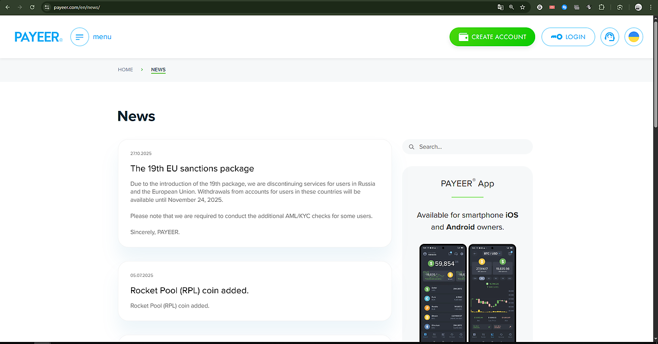 У меня вопрос Pyeer закрывается только для России, а в Украине будет работать?