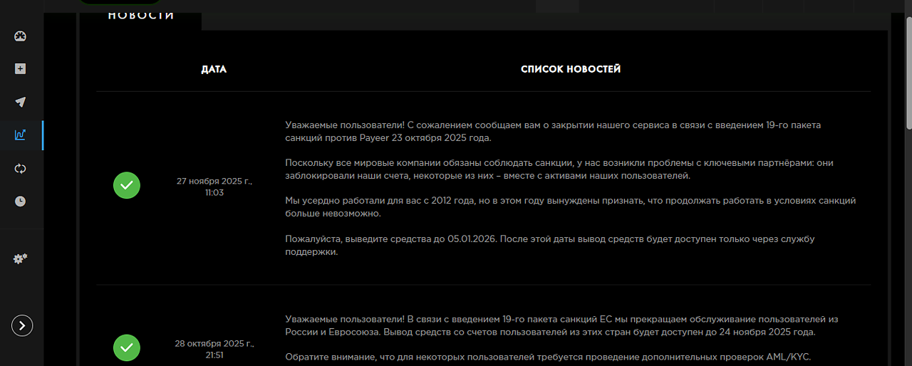 С 24.11.2025 Pyeer в связи с санкциями прекращает работу с Россией.Куда теперь вывдить деньги?ВебМани вообще не понятно как работает НА ЮМани вообще не переводитю