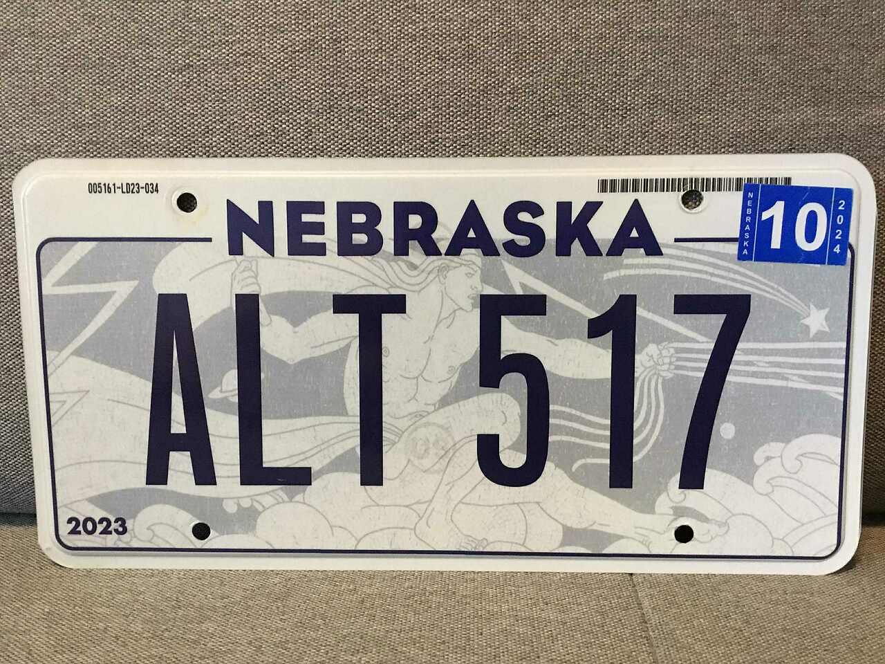 Автомобильный номер штата Nebraska.