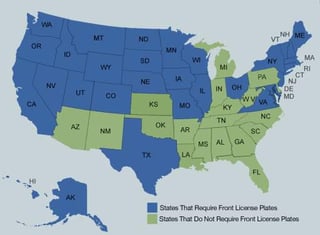 В штате Небраска обязательно нужно устанавливать только задний номерной знак,передний по желанию или вообще можете не устанавливать.