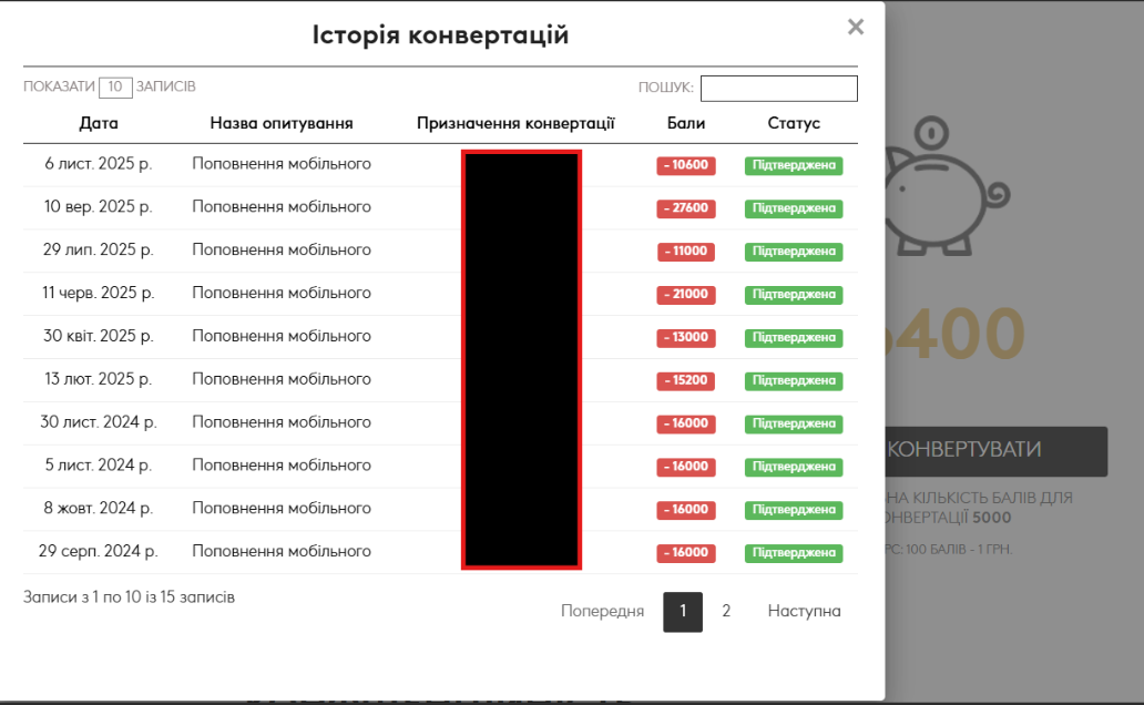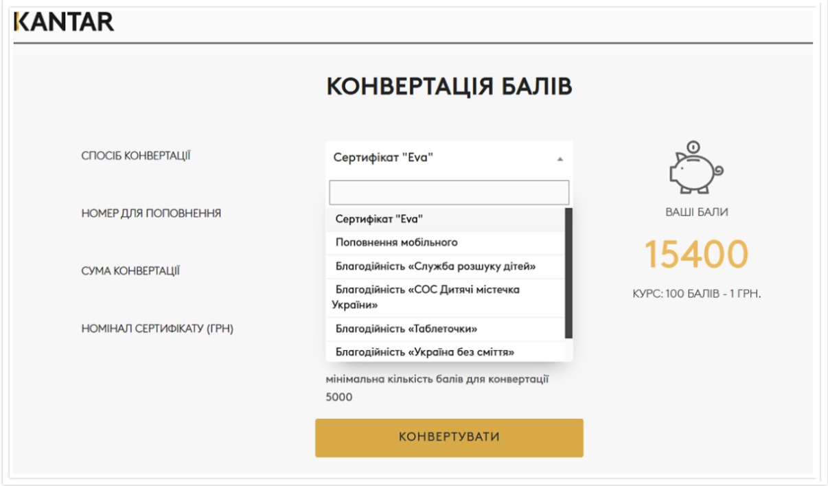 Отримуєш бали, які потім можна обміняти на бонуси — поповнення мобільного, подарункові картки тощо.