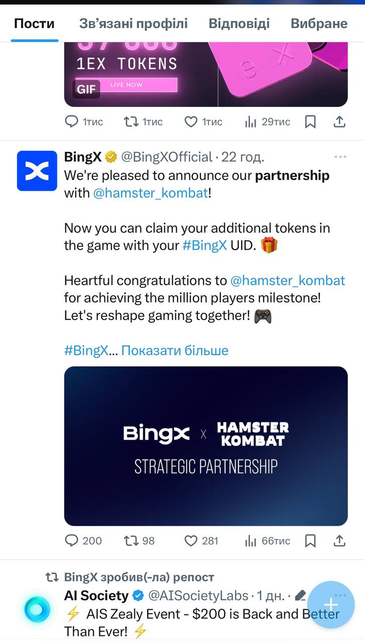 У них уже почти 3 миллиона активных участников и партнерство с биржей BingX (скрин 2)