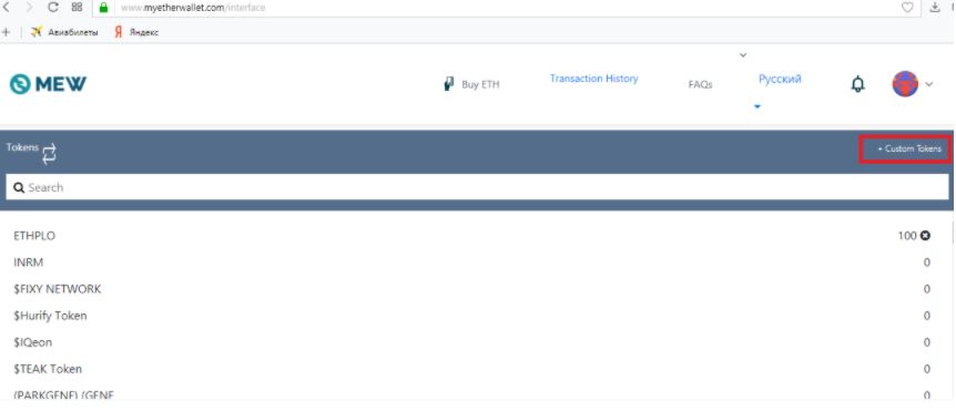 Второй шаг: Ищем "Добавить токены" или "Add tokens" или "Custom tokens" и нажимаем туда:
