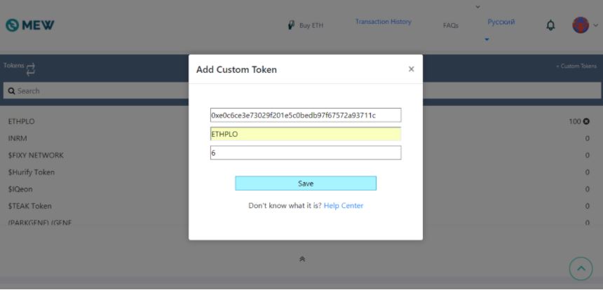 Ну и посмотрите на скрин со вторым шагом: там мои ETHPLO добавлены и я могу ими пользоваться.