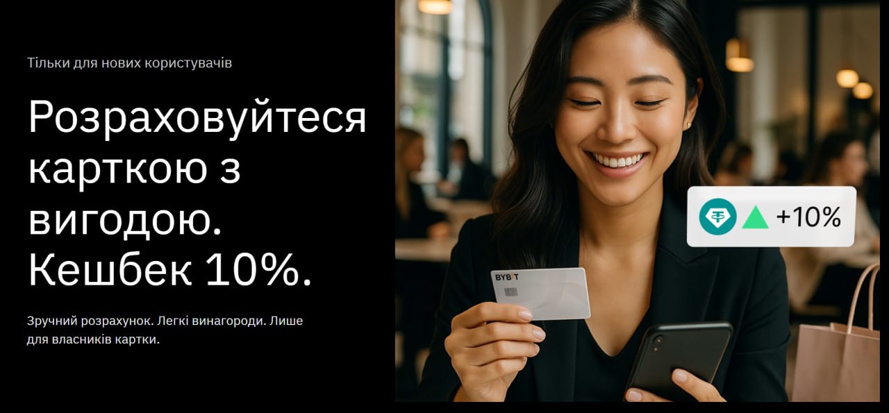 Кешбек 10% + $10 за відкриття крипто картки Bybit