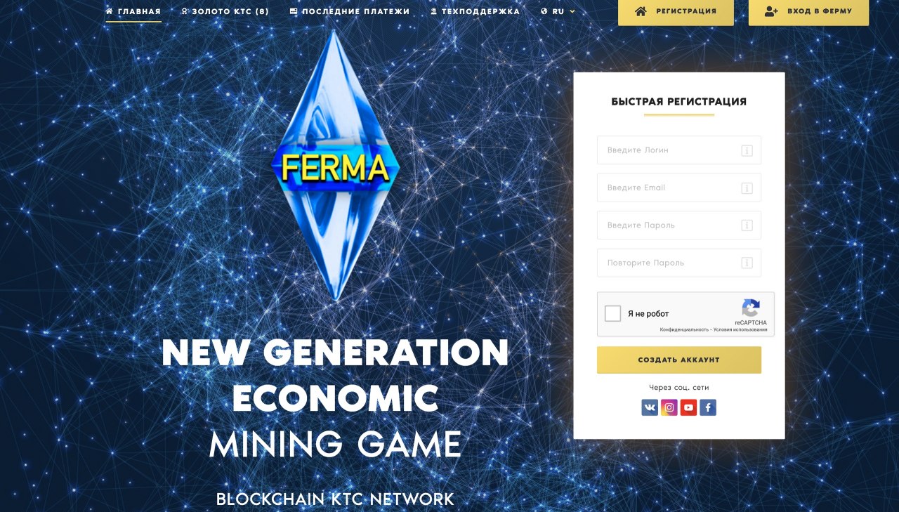 FermaCASH — это место встречи майнеров и инвесторов, а также увлекательная экономическая игра с возможностью заработка реальных денег. Развивайте свою собственную майнинг ферму и выводите реальные деньги на свой электронный кошелек, банковскую карту или мобильный телефон, а также на биржу KTC.Exchange и Telegram @KTCExchangeBot.