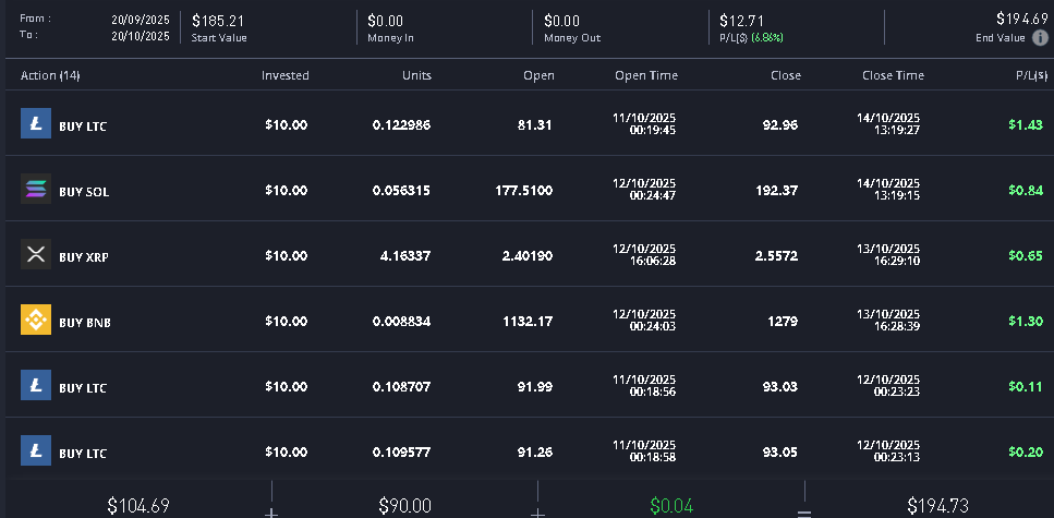 - Ранее в Сериале, мы закрыли многие позы, как шортовые так и лонговые, вывели 120$ и накопили новые 194$ в портфеле без единого пополнения.