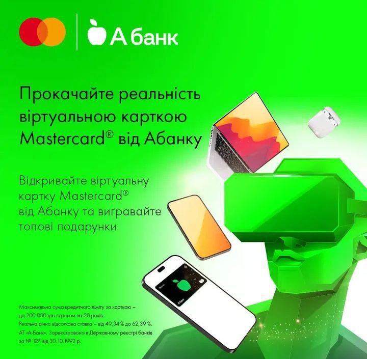🍏Відкривайте віртуальну картку AБанк24 за 5 хвилин та отримуйте 150грн + 150грн за кожного друга(18+)