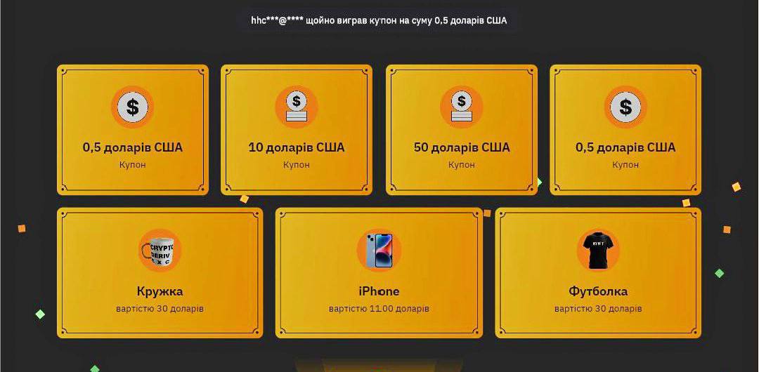 Біржа запустили рулетку в честь річниці запуску фіатних депозитів, всі призи на фото