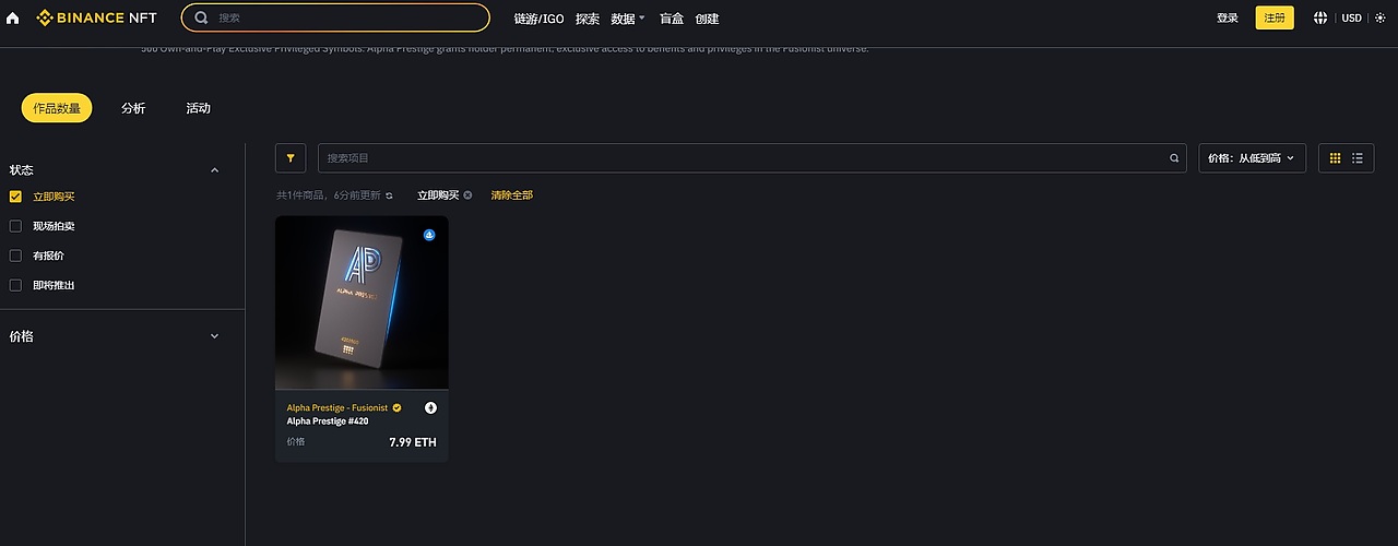 Проект мав нещодавно сейл на Binance NFT - https://www.binance.com/zh-CN/nft/collection/alpha-prestige--fusionist-657077061126041600?isBack=1