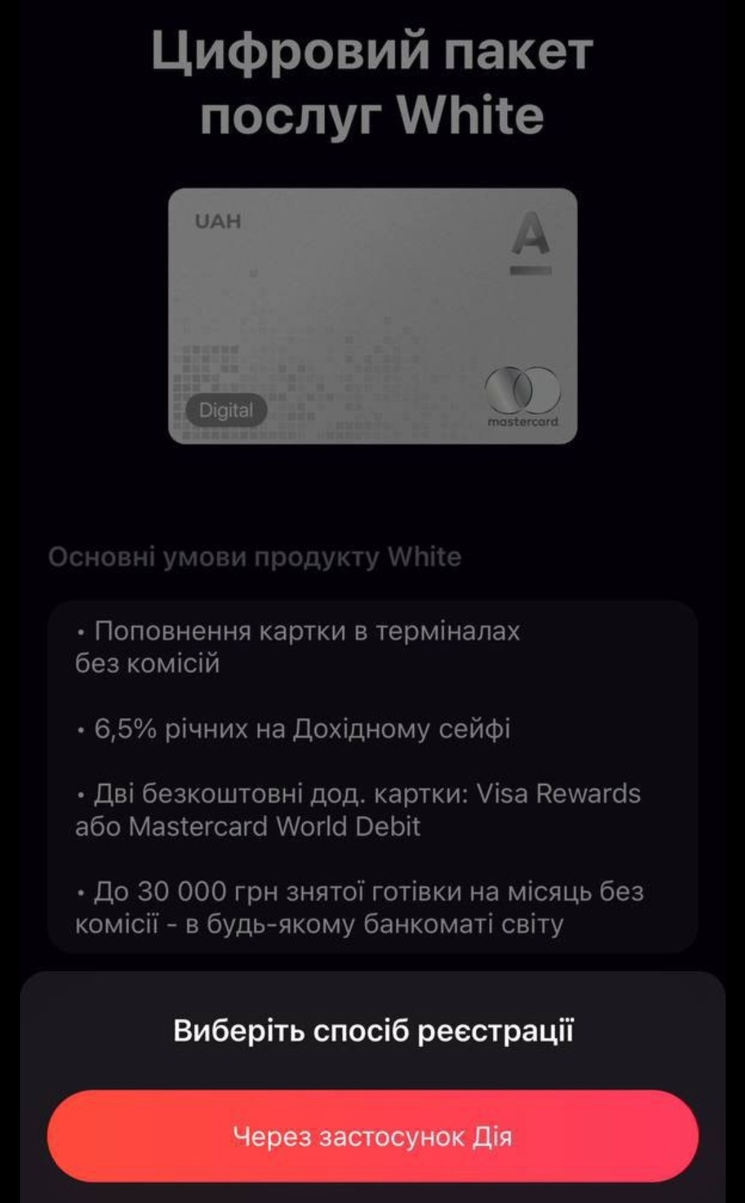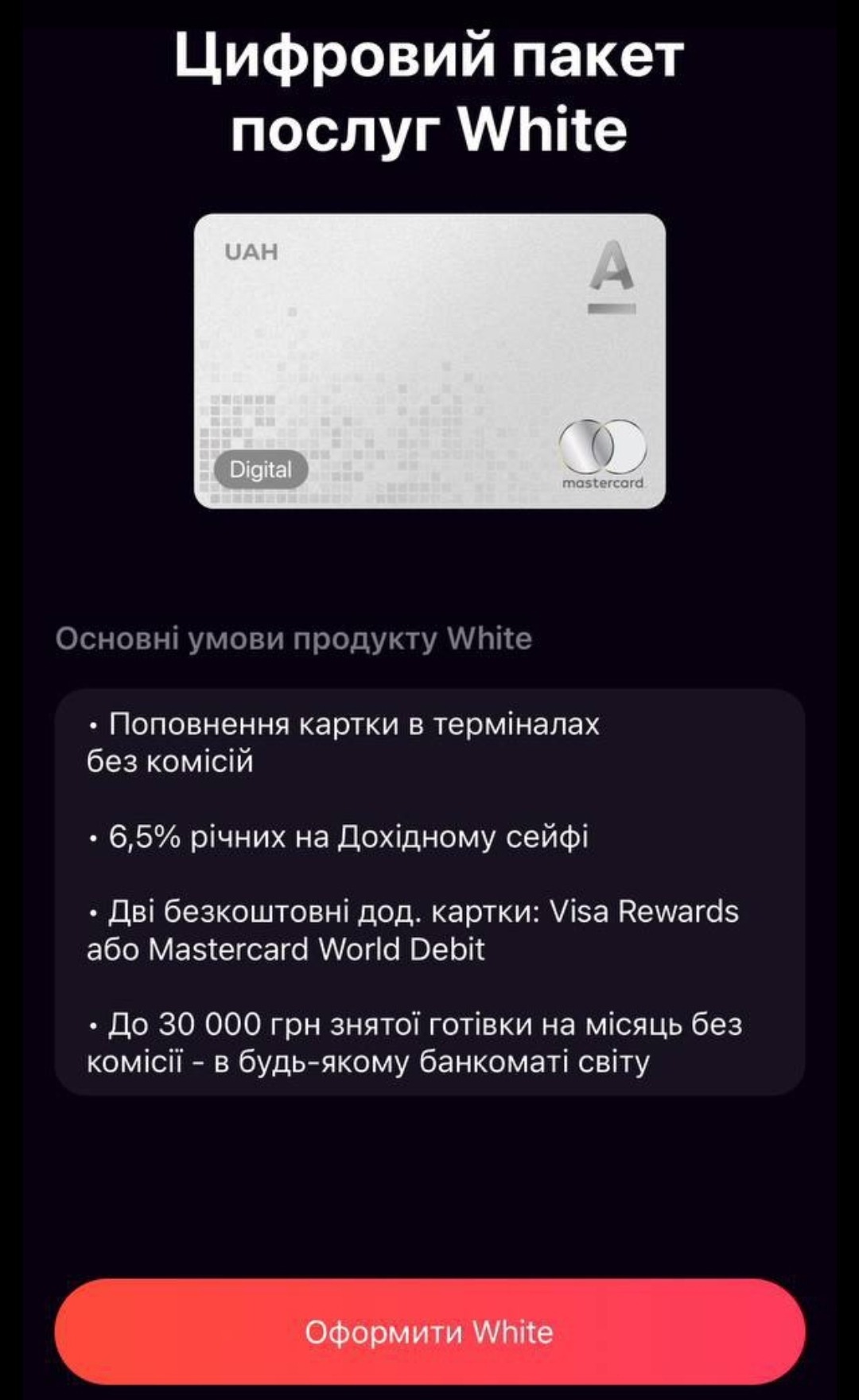 👆 Нажимаємо Оформити White карту