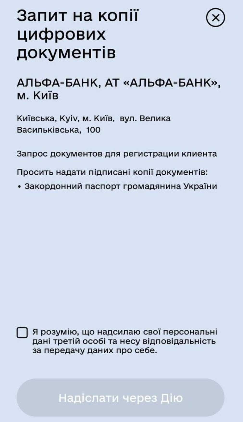 👆Ставимо галочку та нажимаємо на кнопку Надіслати через Дію 👌
