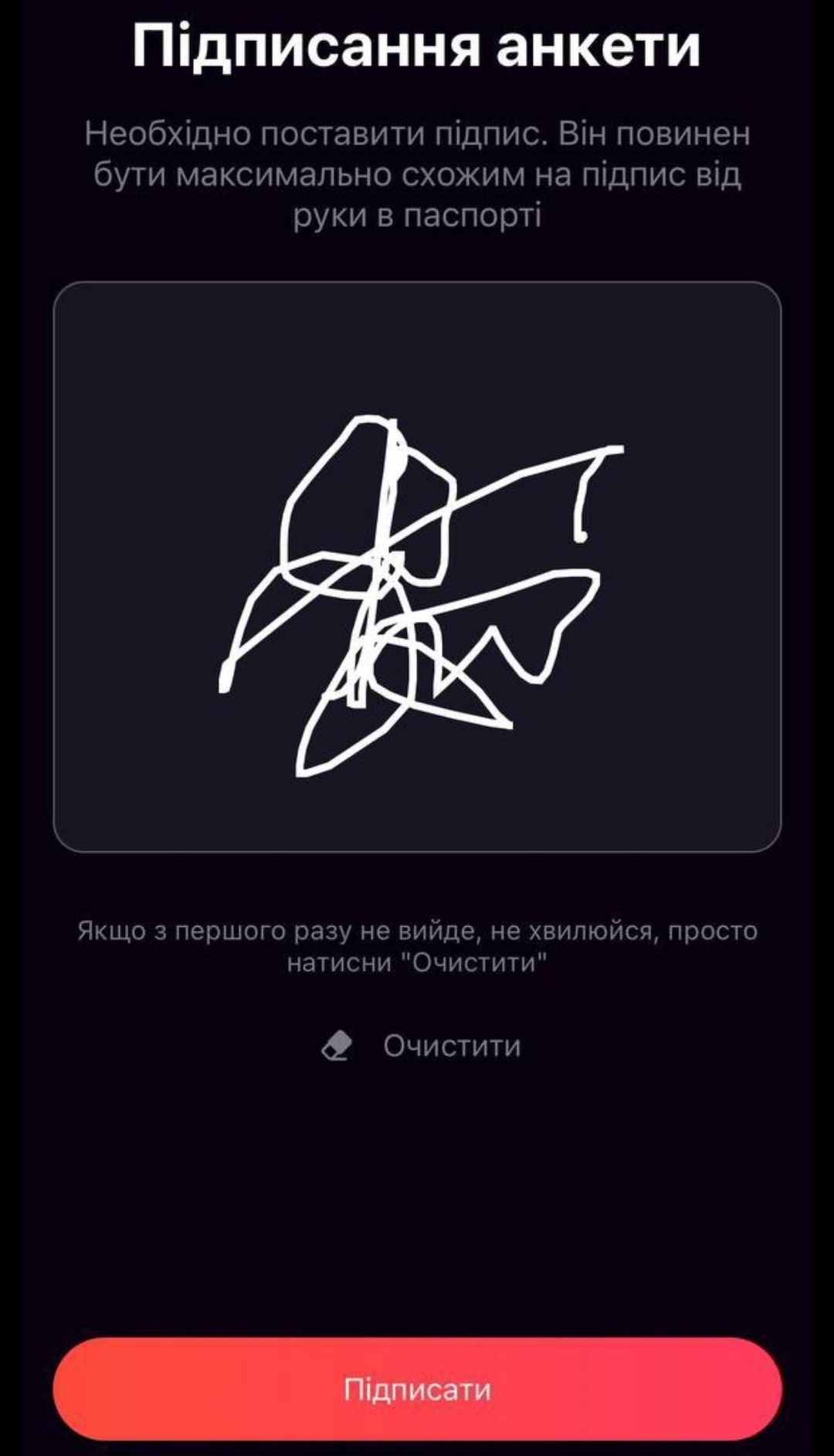 👆Ставимо свій підпис , як в паспорті та нажимаємо на кнопку Підписати