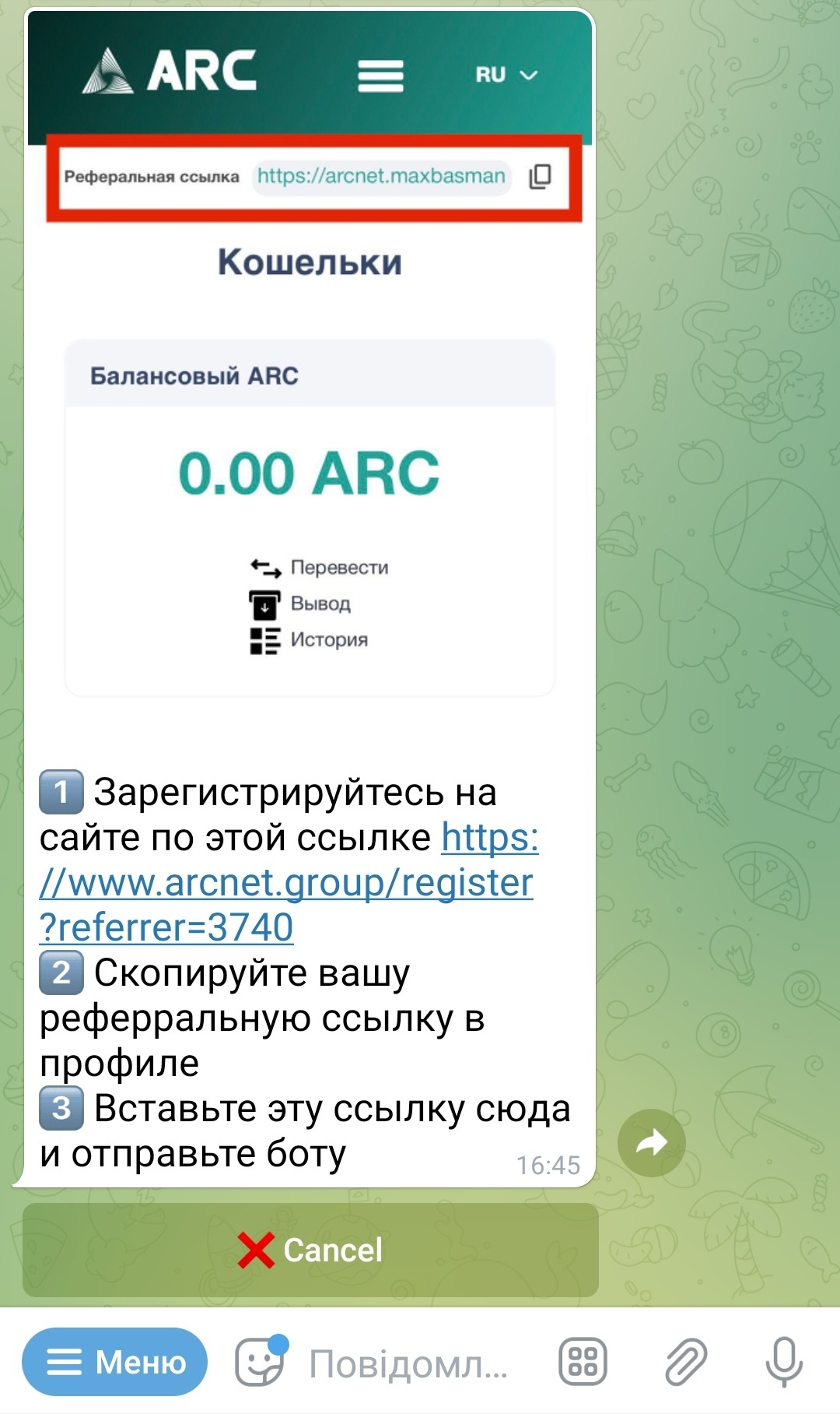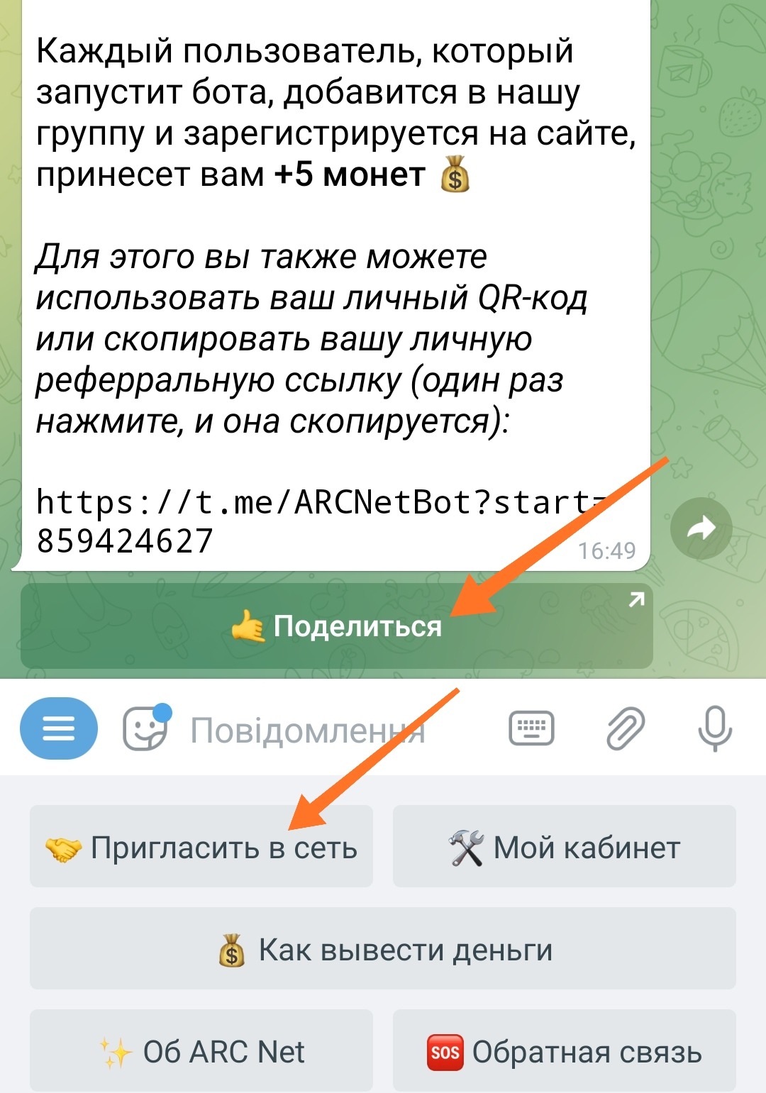 👆 Реєструємось на сайті , копіюємо свою реферальну силку і вставляємо в цей бот 😉