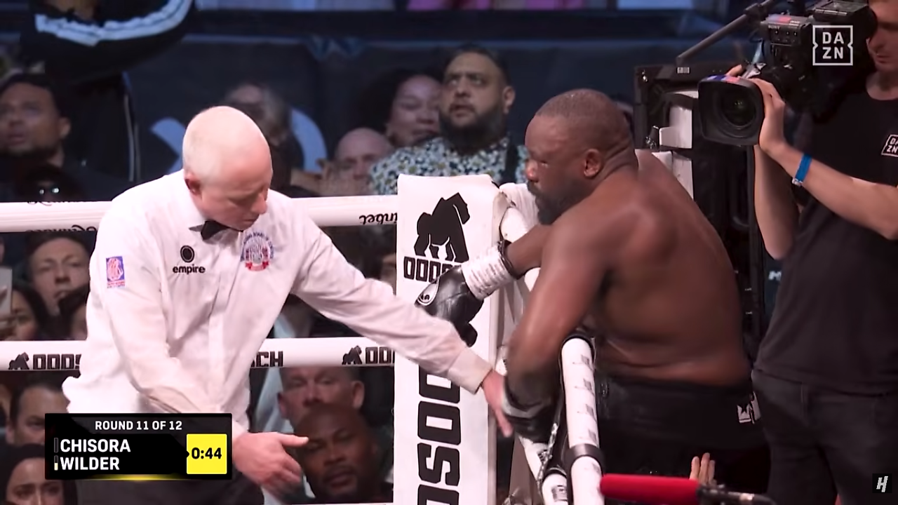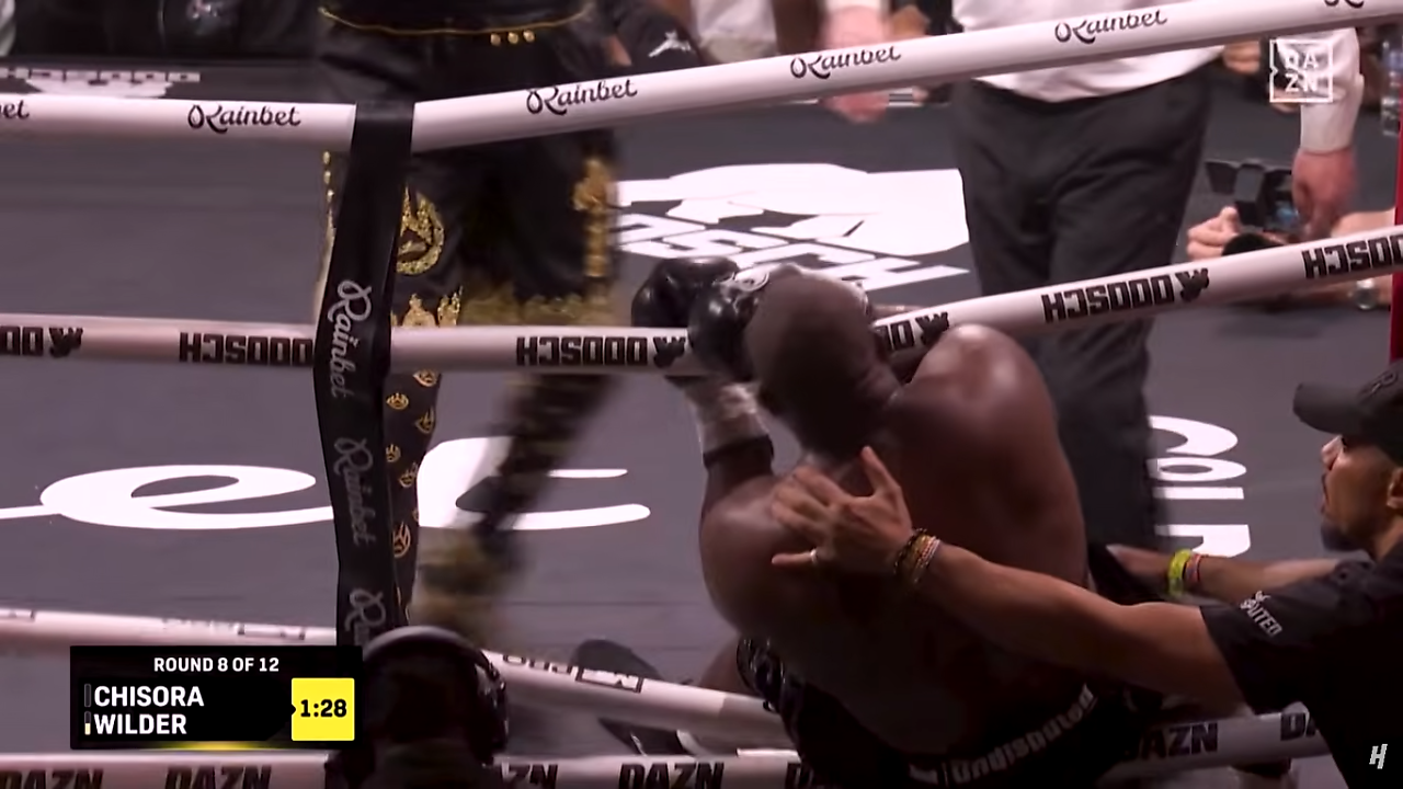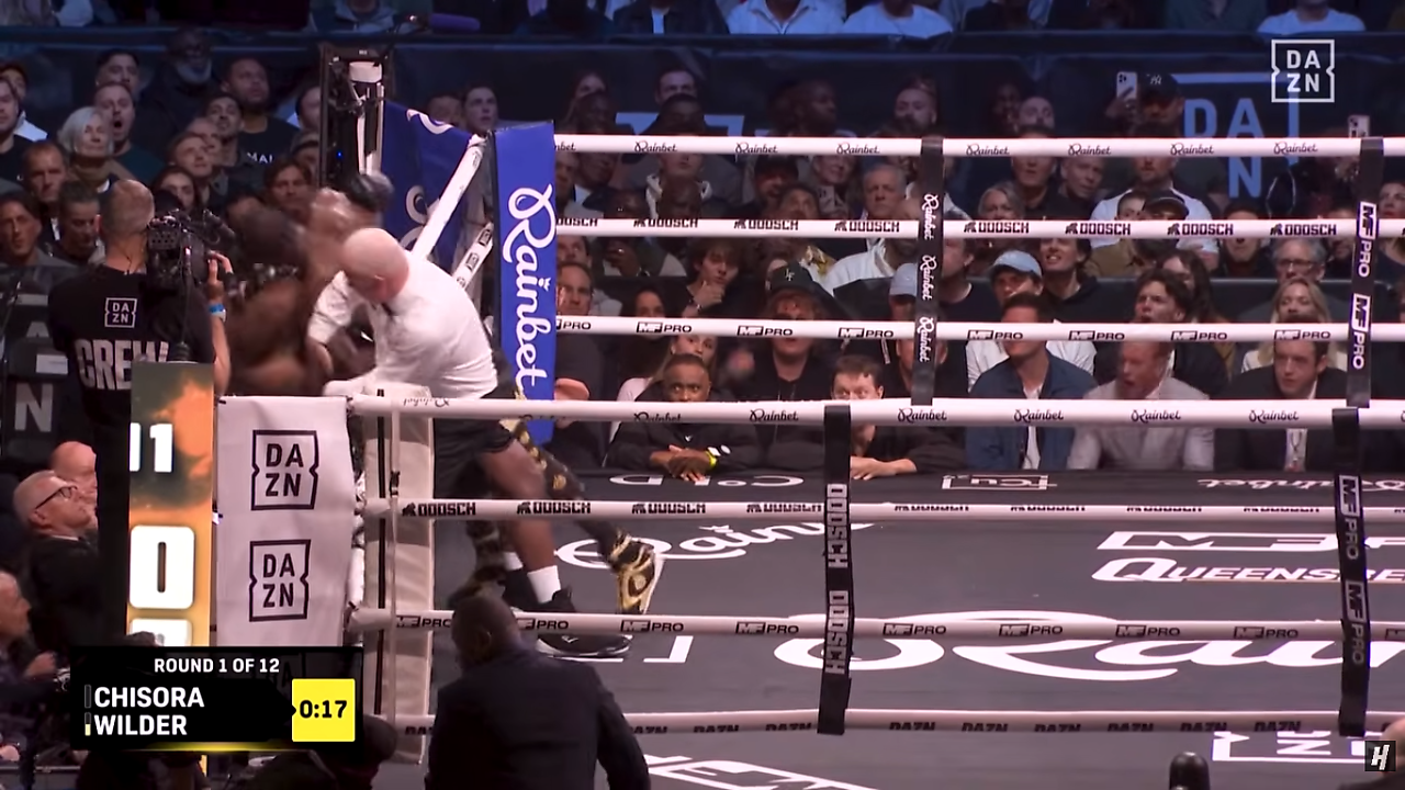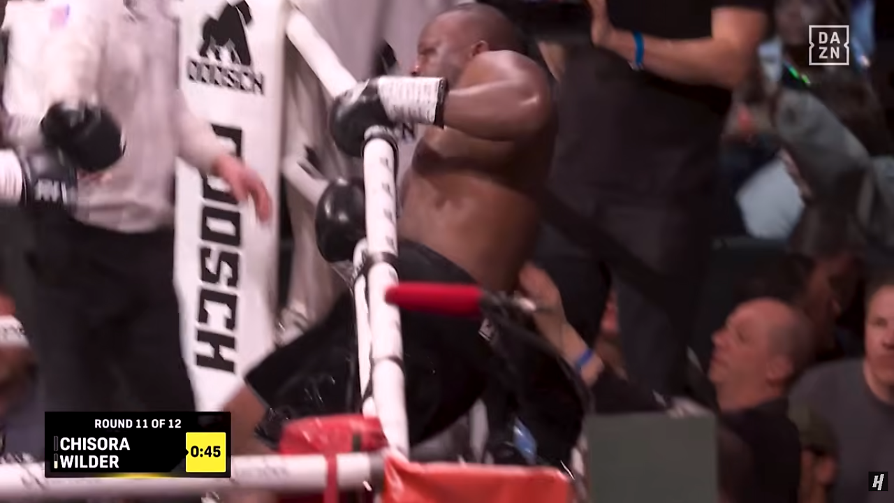 Весьма эпические нокдауны, размашистые удары и агрессивные выпады в исполнении Деонтея пытающегося постоянно выбросить Чисору за пределы ринга или вколотить в пол... Дерек цыплялся в канаты как клещ... с обратной стороны ринга! Лол!!!!!