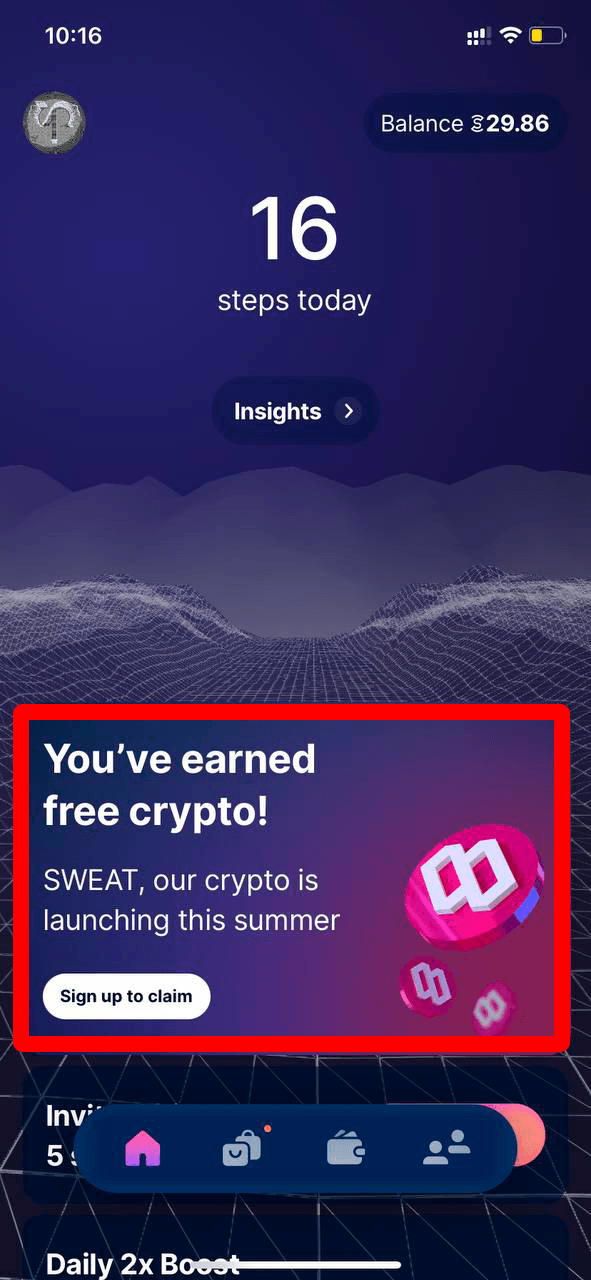 Готово! Щодня ви можете заробляти 10 $SWEAT: Вважаються лише перші 10 000 кроків з розцінкою у вигляді одного токену за 1000 кроків.