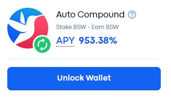 Токены $BSW можно стейкать под 953.37% годовых (и 953.37% годовых это не сложный процент, а APR!)