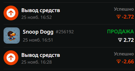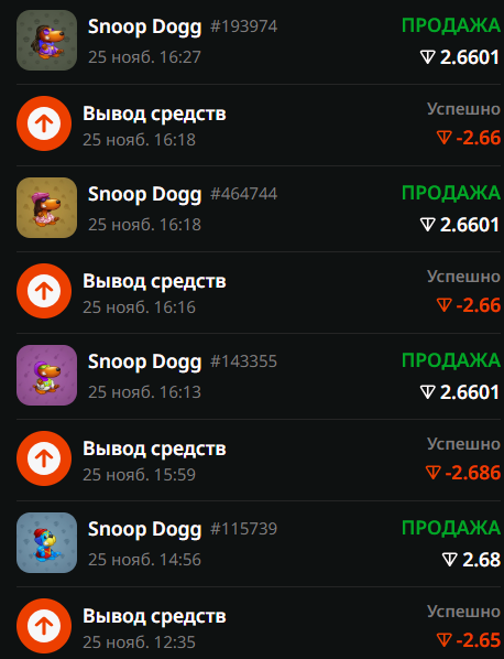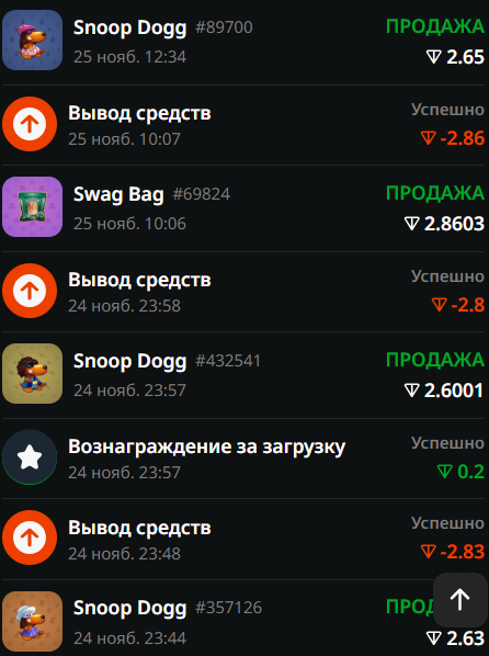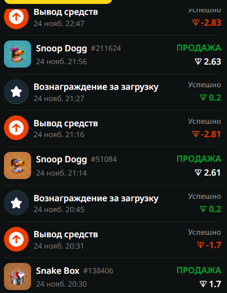 Но я решил "горит сарай - Гори и хата" и продал змею на @mrkt и получил 1.9 тон, их я вложил в казино, выиграл снуп-дога за 2.6 тон, продал получив бонус 0.2 и вложил в казино 2. итого я прокрутил это десяток раз если не более...
