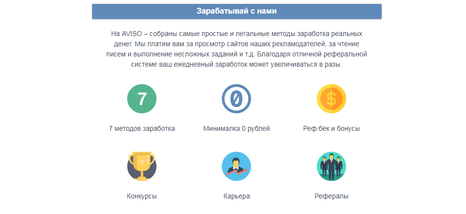 Aviso — перспективный букс, работающий с 2018 года и собравший порядка 4 000 000 пользователей. За период существования проекта участникам было выплачено более 280 000 000 ₽. Сервис активно развивается, регулярно стимулирует активность аудитории и предлагает автоматический вывод средств с минимальным лимитом от 2 ₽, на электронные кошельки, банковские карти и криптокошельки.