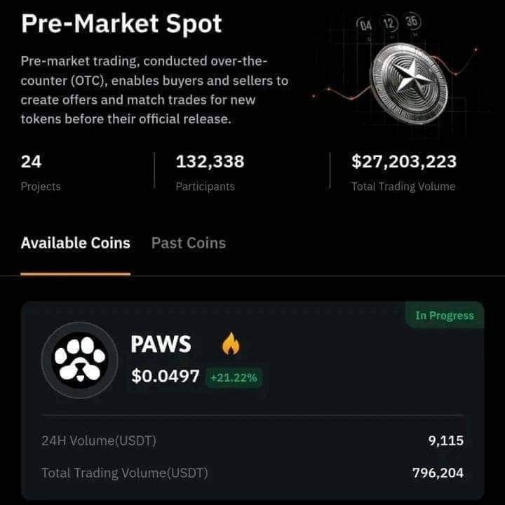 PAWS (https://t.me/PAWSOG_bot/PAWS?startapp=8vwtfi20 ) 🐾 зараз торгується на Pre-Market по 0.049$ 🕵️