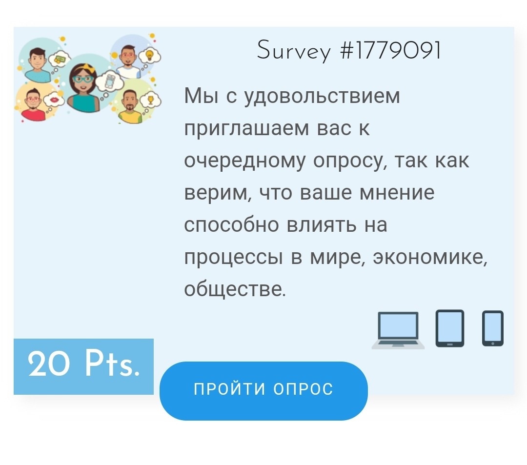 👆 Ось для прикладу , за це пройдене опитування вам дадуть 20 гривень, нажимаємо на кнопку пройти опрос